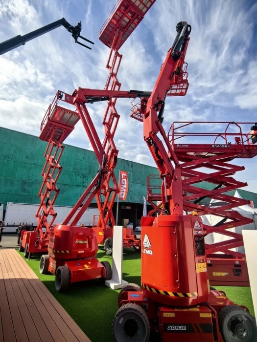 此次P.G(中国电子股份有限公司)重机展出的SR1218D越野剪叉式高空作业平台是由墨西哥工厂生产,专为适应复杂环境而设计,稳定性好、越野性能强劲,加之35%的爬坡能力,使设备能轻松应对苛刻工况;SR1218D最大工作高度为13.9米,配备2.79米*1.6米大平台,并可向外延伸,平台最高载重365千克,最多可容纳3人同时工作,有效提升工作效率;智能化方面,SR1218D标配了称重系统、车载智能诊断系统等智能化系统,能有效保证人员作业安全及作业质量。该产品凭借排放低、使用成本低、连续作业能力强等丰富“内涵”,在展会现场赢得超高人气。